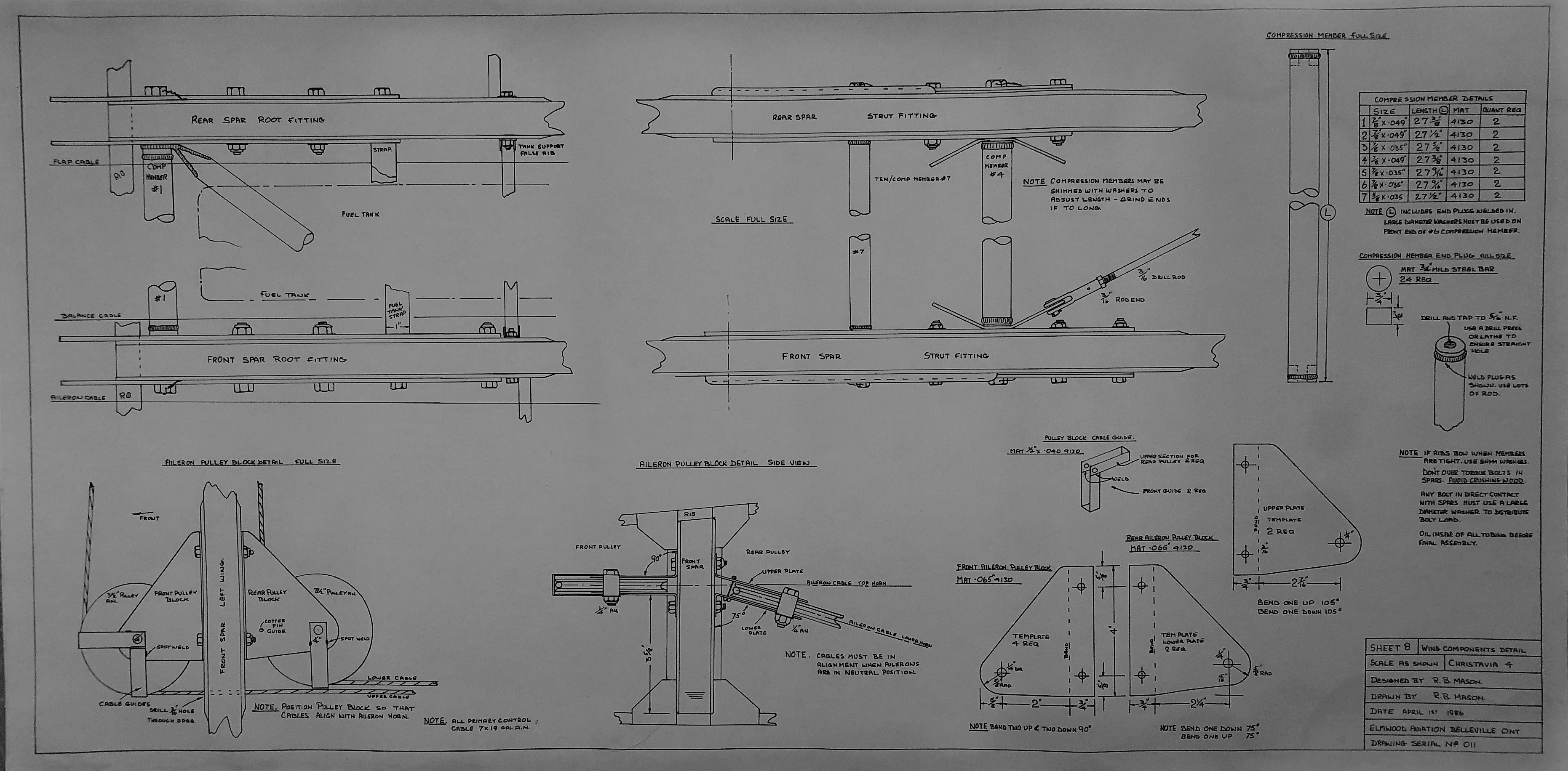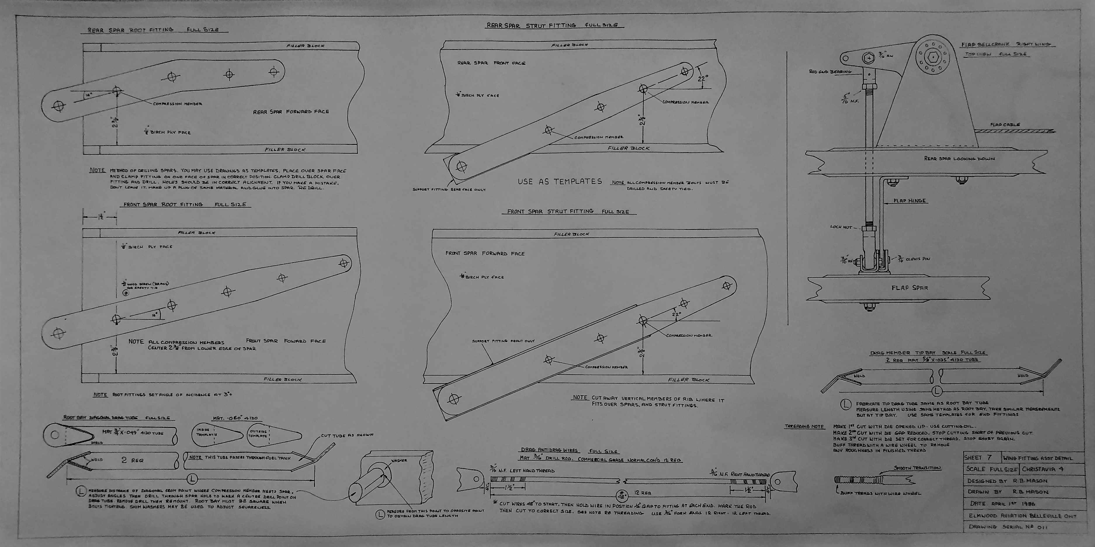 Plywood is another common aircraft building material. It covers the wings of the aerobatic One Design and the fuselage of the Falco, and the gussets that strengthen wood wing ribs and fuselage structures are made from it. This is not hardware-store-variety plywood, mind you, but Mil-Spec aircraft-grade made from imported African mahogany or American birch veneers laminated in a hot press using waterproof glues. The core of aircraft-grade plywood is usually poplar or basswood.
