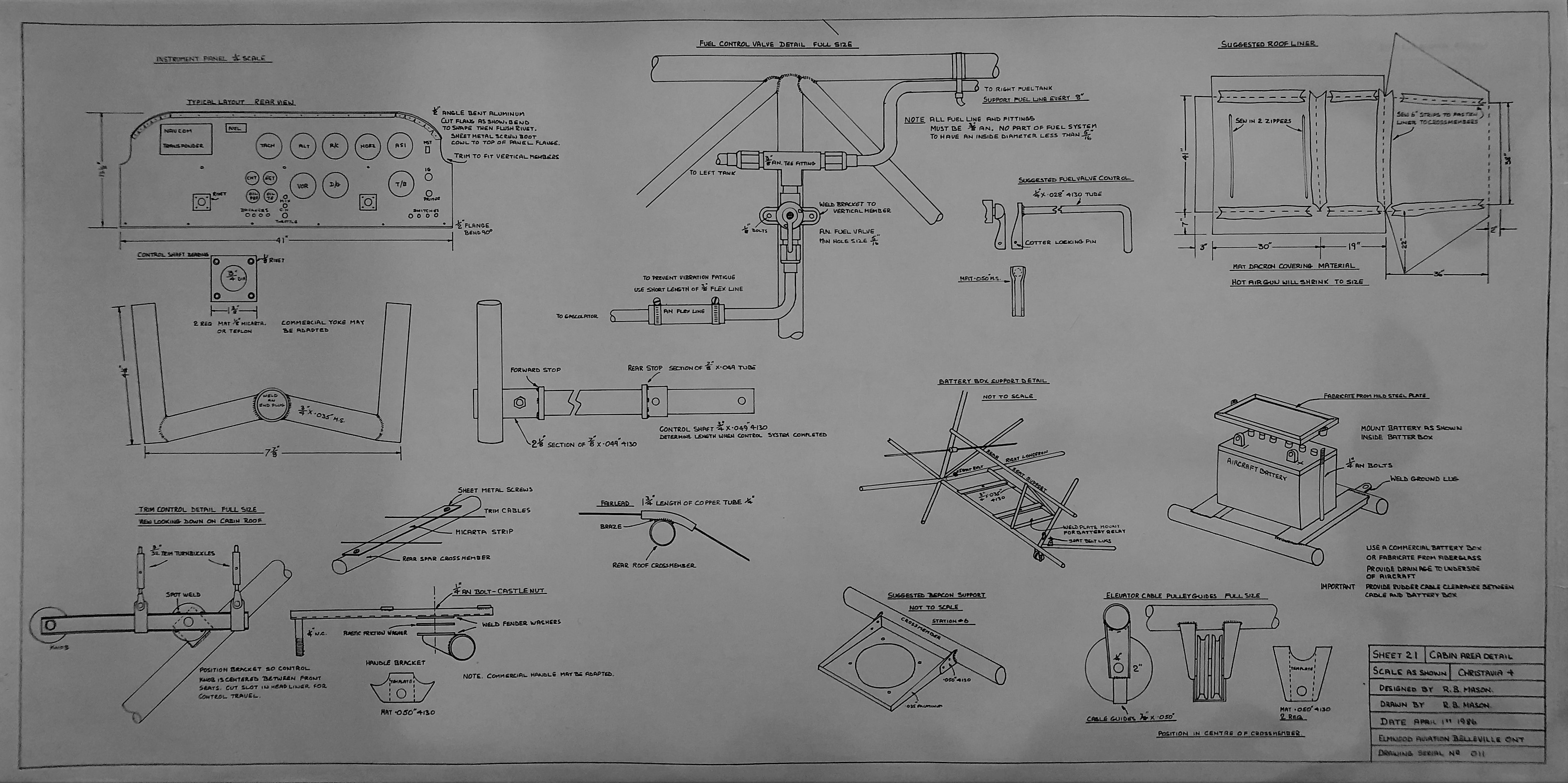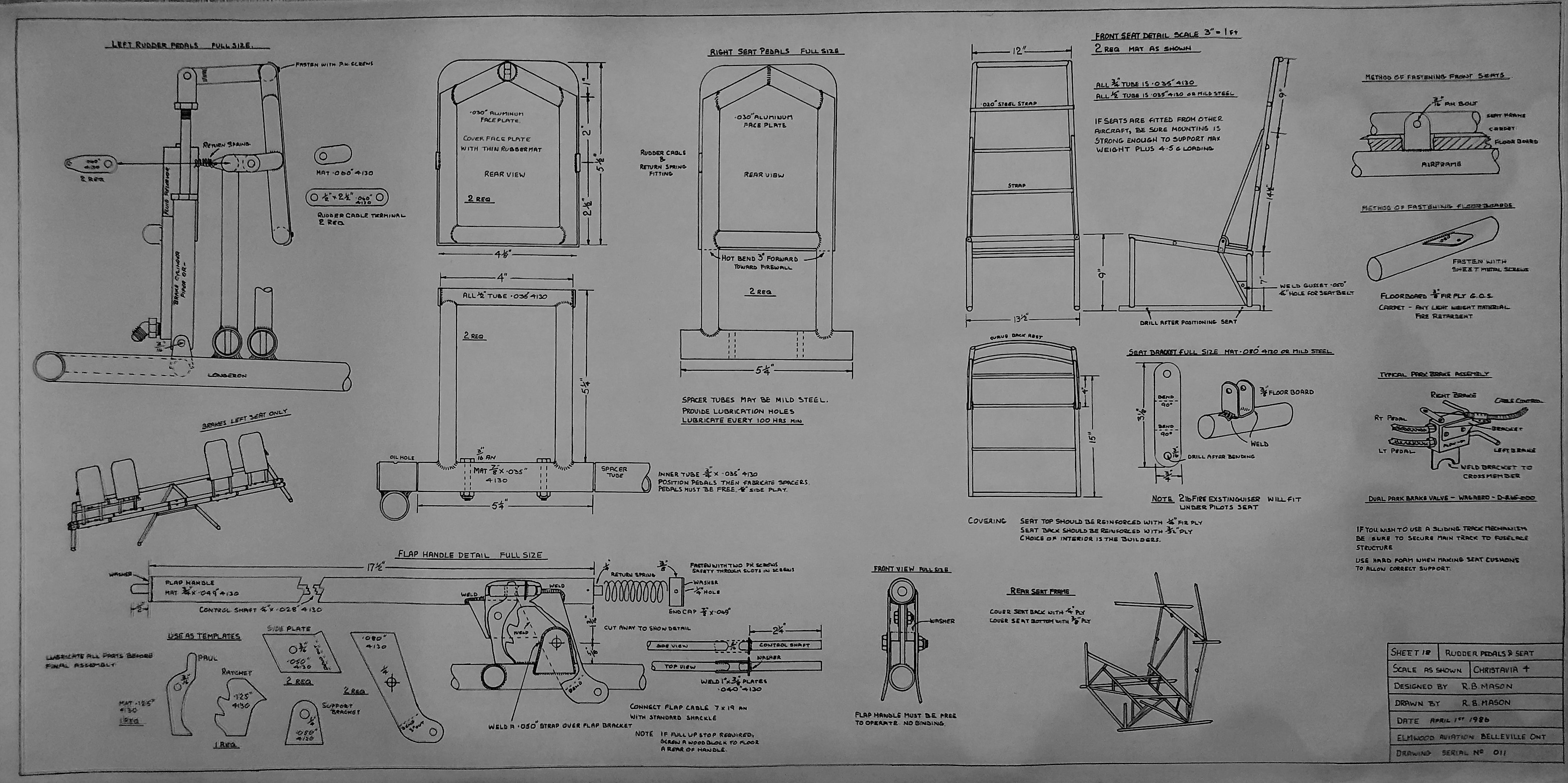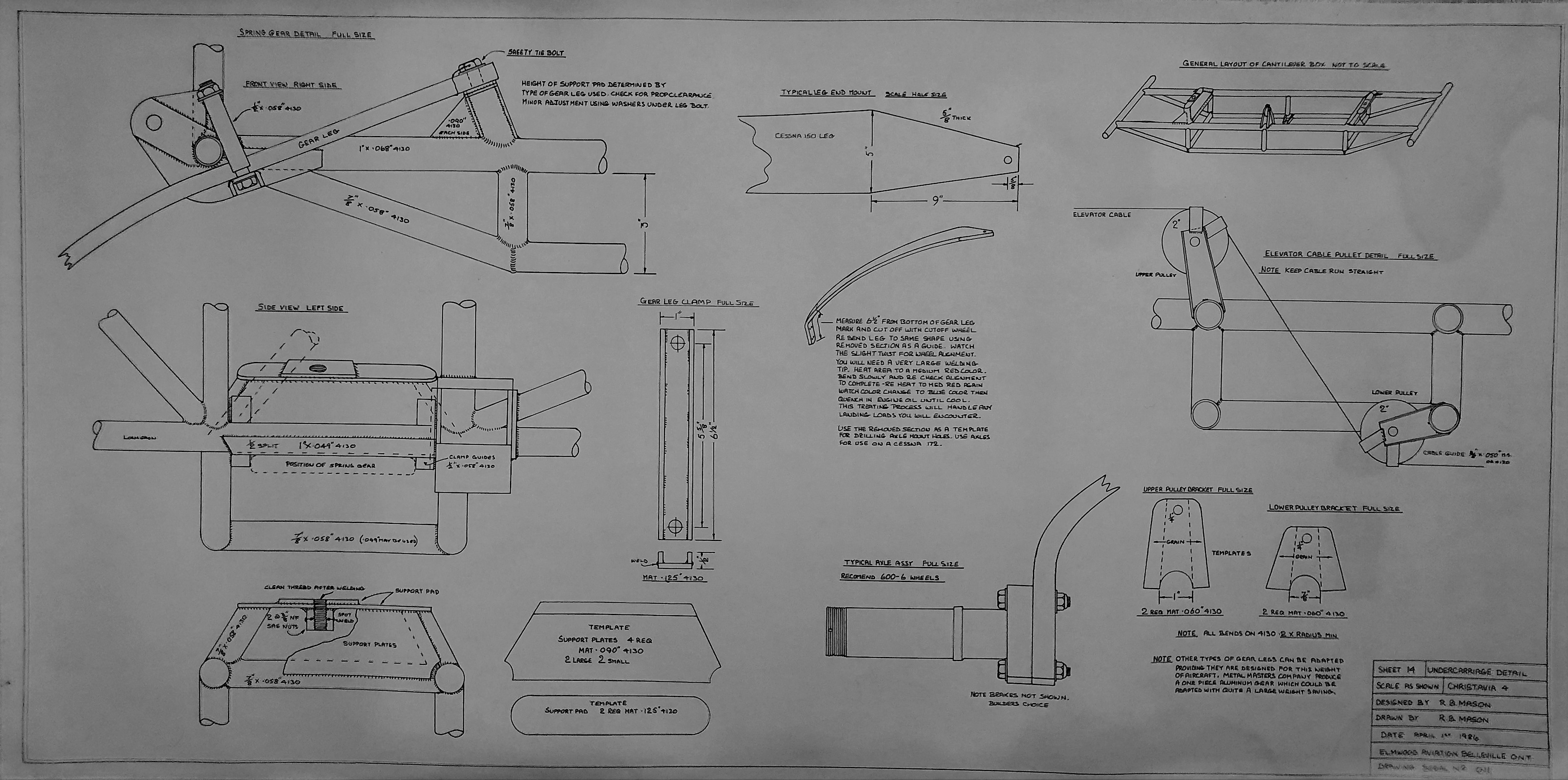 The Charger is a two-place airplane constructed of 4130 steel tube, wood, aluminum, and fabric. The fuselage is primarily of 4130 steel tubing. The wings are primarily of spruce. The covering is mostly fabric, with aluminum skin typically running from the engine to the cockpit area.